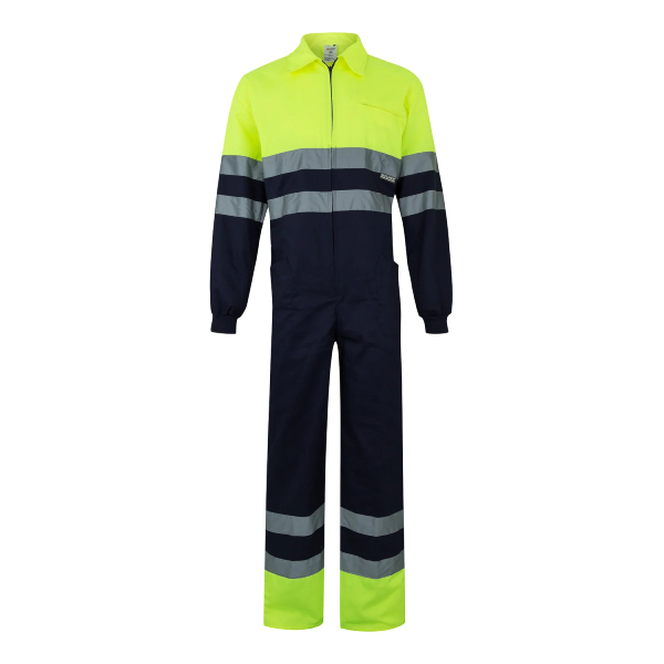 100% poliéster. Tiras reflectantes de 5cm de ancho alrededor del cuerpo y una en cada hombro. Bolsillo para teléfono móvil o walkie-talkie en el lado izquierdo, parte delantera. Cierre con cremallera en todo el largo. Dos bolsillos inferiores con solapas accesibles desde la parte superior y por los lados, bolsillos para bolígrafos y llavero, bolsillo para identificación en el lado derecho