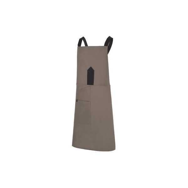 Delantal de peto con un bolsillo delantero y hebilla reguladora en el cuello para ajustar.