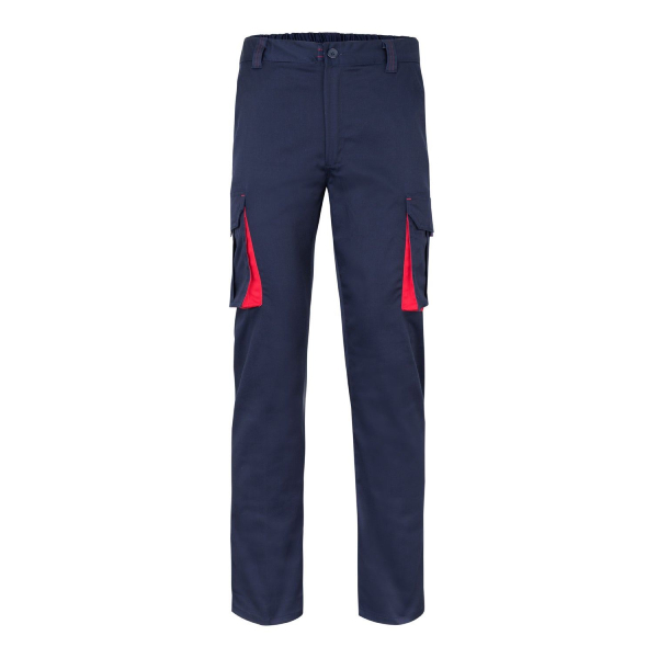 Pantalón para hombre, confeccionado en tejido de algodón ripstop elástico ligero, con elásticos laterales y trabillas en la cintura, cierre con cremallera y botón de metal, dos bolsillos delanteros de corte clásico, dos bolsillos laterales con tapeta y botones a presión, un bolsillo con cremallera en la parte izquierda, un soporte para metro retráctil a la derecha, dos bolsillos traseros de ribete con ojal y botón.